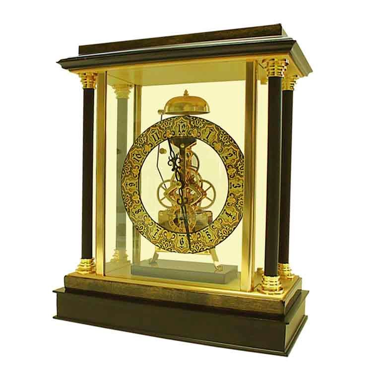 Reloj decorativo con acabados en oro, perfecto para interiores clásicos.